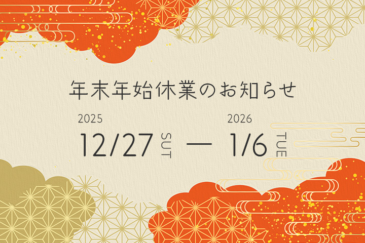 誠に勝手ながら、年末年始の休業は下記のとおりとさせていただきます。